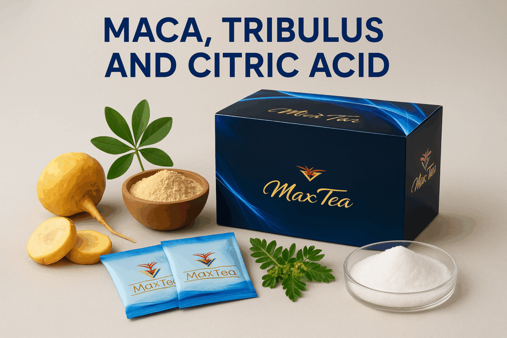 Max-Tea ialah suplemen sihat dengan campuran enam jenis tumbuhan herba – MACA, Tribulus Terrestris, Asid Citiric atau Vitamin C Lemon, Polifenol Teh dan Buah Pala. Ia membersihkan organ dalaman, melancarkan peredaran darah, menghapuskan sisa toksin dan mengimbangi sistem hormon. Dengan fungsi yang luar biasa, ia membantu meningkatkan kekuatan seksual seseorang juga.